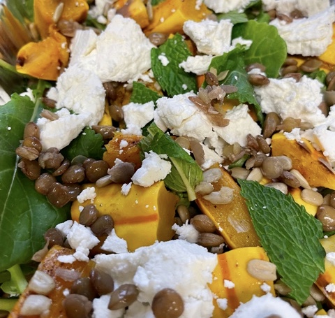 Delicata Squash Puy Lentils seasonal greens sunflower seeds & Mint Virgin Olive Oil Dressing