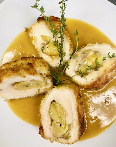 Mapled Apple , Cabot Cheddar & Thyme Stuffed Chicken Breast w’ Dirty Mayor Cider Jus